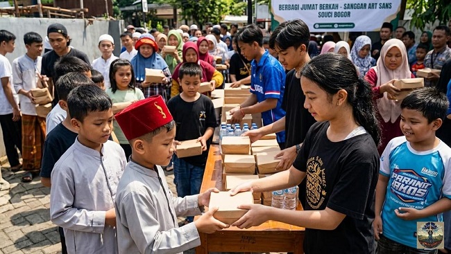 Dengan senyum tulus, tangan-tangan mungil ini membagikan nasi kotak dan minuman kepada para jemaah serta warga sekitar.