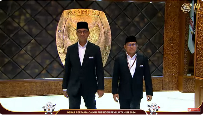 Visi-Misi Capres Nomor Urut 1 pada Debat Pertama Calon Presiden 2024 di Komisi Pemilihan Umum (KPU), Jakarta Selasa 12 Desember 2023.